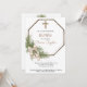 The wooden texture of the wreath gives a warm and inviting feel, reminiscent of a cosy, rustic cabin in the woods. The wreath's circular shape symbolises eternity and unity, making it a perfect choice for a baptism invitation. The combination of wood and delicate flowers represents the earthly and the divine, creating a visual representation of the spiritual journey the child is about to embark upon.