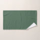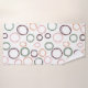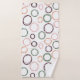 This towel set has a bath towel with a Boho design of overlapping circles on retro pink, purple, moss green, and caramel orange, a purple washcloth, and a green hand towel.