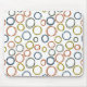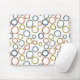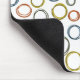 This mouse pad has a Boho design of overlapping circles on retro shades of green, brown, blue and grey.