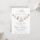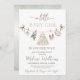 An elegant boho-style invitation for a baby shower celebrating a baby girl. The design features a soft and earthy colour palette, centred around sage green tones and adorned with charming elements like baby clothes and delicate bows.