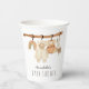 This boho clothesline girl baby shower paper cup features baby clothes such as a romper and a pair of pants, a stuffed bunny/animal, and a rainbow. Personalise it for your needs. You can find matching products at my store.