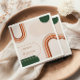 Modern boho Coctail Napkins with arch shapes in terracotta, rust, burnt orange, and dark green, emerald tones.