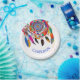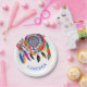 The Dream Big bohemian birthday party paper plate showcases a colourful, whimsical design perfect for any celebration. It features playful blue script and a stunning watercolor dreamcatcher, adorned with intricately detailed Native American-inspired feathers on a crisp white background. This plate adds a touch of elegance and creativity to your party, while keeping the theme light and joyful. Fully customisable, you can personalise the text to fit the occasion, making it a special and unique addition to your event. Perfect for anyone who loves boho style and a personalised touch for their celebration.