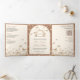 Boho Cream Beige Wildflower Butterfly Arch Wedding Tri-Fold Invitation