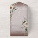 AVAILABLE WITH OR WITHOUT A QR CODE TO SCAN IN THE RSVP AREA. This simple yet elegant design has cream and brown roses on a soft white blur overlay with a brown background. The entire invitation is highlighted with white sparkles. The front flap contains the bride and groom's first initials. This design is available with or without dinner options on the RSVP card. Add a QR code to your invitation so that gusts can quickly access your wedding Website for details, directions, menu options, and more, or add your gift registry Web URL. Go to my store, Simply Farmhouse Press to choose either version. Personalised All-In-One invitations are a unique combination of both a beautifully printed custom invitation with an easy to tear off perforated RSVP postcard. And they are so easy to use! You simply fold, then seal the back flap with the three included clear stickers, and mail. And when your guests receive your custom invite, they just tear the perforated RSVP Card off and drop it back in the mail to you!