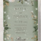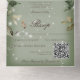 Boho Cream Roses Sparkle Sage Green QR Code All In One Invitation