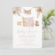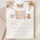 Invite your loved ones in style with this boho baby shower invitation featuring a cosy crib scene, soft pink baby blanket, teddy bear, and delicate neutral-toned florals. The design blends rustic charm with bohemian elegance, perfect for celebrating parents-to-be in a warm and welcoming way. Watercolor illustrations of a bassinet, wooden toys, and floral accents create a peaceful and loving vibe. Fully customisable, this invitation is ideal for baby showers with a soft, natural, and heartfelt atmosphere.