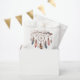 Complete your baby shower celebration with this beautifully personalised boho favour bag. Featuring a dreamy watercolor dreamcatcher, blush and dusty pink feathers wrapping around both sides, and a delicate butterfly on the back, this favour bag adds an elegant finishing touch to your party. Add the baby's name and shower date to make it uniquely yours. Perfect for sweets, small gifts, or thank-you treats.