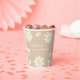 Boho Daisy Floral Paper Cups is chraacterised by a boho style with daisy floral artwork and neutral earthy and beige colours.