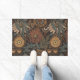 A modern Boho style abstract geometric florals and ferns. Deep browns, greens, and cream. Jungle boho style. Earthy dark colours.