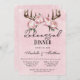 Boho Deer Antlers Pink Peonies Rehearsal Dinner Invitation