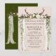 Design features a printed coloured foliage element in shades of green overlaying a tan kraft paper textures with deer antlers and a white canopy top with calligraphy script or type writing. Great for your wedding celebrations!