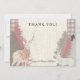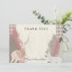 5x7 Thank You Note Flat Card with envelope features a pair of sweet deer in a floral patterned silhouette flank either side of your text. Blush pink and grey buffalo check plaid background with a wood grain background sets off the details of your baby shower in a typography format. A pair of floral woodland animals - bear and deer on the back side bring attention to any message you want to share. Art painted and graphically designed by internationally licensed artist and designer, Audrey Jeanne Roberts, copyright.