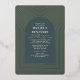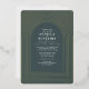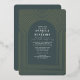A unique design with multiple delicate arch lines surrounding your wedding invitation information in gold foil stamped, over a dark green background