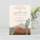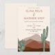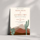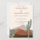 This boho desert wedding invitation features a clean, minimalist layout with elegant typography in warm earth tones. The design highlights a serene desert landscape with layered mountains in shades of terracotta and soft brown, complemented by hand-drawn cacti accents. It captures a balance of natural beauty and modern simplicity, perfect for a desert-inspired celebration.