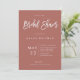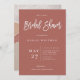 Boho chic desert rose red, bridal shower invitation. Modern chic typography design style template with chalk drawn desert sunset landscape backing.