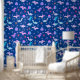Boho Dinosaurs Colourful Dark Blue Nursery Wallpaper