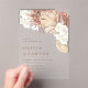Elevate your wedding stationery with this boho acrylic wedding invitation featuring soft watercolor artwork of pampas grass, palm leaves, and white orchids. Printed on clear acrylic, the neutral floral design gives a modern, elegant feel while maintaining a natural, boho vibe. Perfect for outdoor, desert, or garden weddings, this invitation makes a statement while complementing rustic or minimalist themes. Pair with vellum jackets or linen envelopes to complete your look.