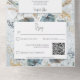 Boho Dusty Blue & Brown Floral Monogram QR Code All In One Invitation