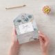 AVAILABLE WITH OR WITHOUT A QR CODE TO SCAN IN THE RSVP AREA OR WITH OR WITHOUT DINNER OPTIONS. This design is simple and beautiful, complete with the groom or bride's last initial on the outside flap. This design features dusty blue bohemian wildflowers with tan brown foliage. Also add a customised QR code to your invitation so that gusts can quickly access your wedding Website for details, directions, menu options, and more, or add your gift registry Web URL. Personalised All-In-One invitations are a unique combination of both a beautifully printed custom invitation with an easy to tear off perforated RSVP postcard. And they are so easy to use! You simply fold, then seal the back flap with the three included clear stickers, and mail. And when your guests receive your custom invite, they just tear the perforated RSVP Card off and drop it back in the mail to you!