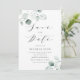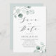 Save the Date! Announcement your event with this customisable Bar Mitzvah save the date announcement. This greenery bat mitzvah invitation features watercolor dusty blue eucalyptus leaves with a whimsical script. Personalise by adding your own details. This eucalyptus Bar Mitzvah save the date is perfect for any season and theme.