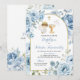 Boho Dusty Blue Floral Boy Baptism Invitation