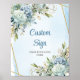 Boho Dusty Blue Floral Gold Frame Wedding Sign