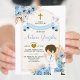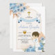 Boho Dusty Blue Flowers Boy First Holy Communion Invitation