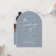 Boho Dusty Blue Photo QR Code Arch Wedding Invitation