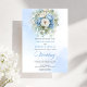 Boho Dusty Blue White Peony Gold Wedding Invite