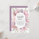 Boho Dusty Pink and Purple Floral Botanical Greenery Watercolor Baby Shower Spring or Summer Invitations - includes beautiful and elegant script typography with modern botanical flowers and greenery for the special Mother to Be celebration for a new baby boy, baby girl or gender neutral announcement.