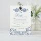 Elegant Bridgerton Garden wedding card dusty blue with white and elegant script calligraphy. Classy and elegant script calligraphy.