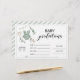 Watercolor green boho eucalyptus, baby girl clothes and toys baby shower games, baby predictions stationery.