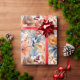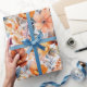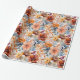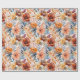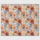 Boho Fall Floral Blooms Terracotta Apricot Blue Wrapping Paper