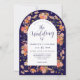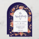 This boho floral arch navy blue fall wedding invitation beautifully blends autumnal charm with elegant sophistication. Featuring hand-painted watercolor wildflowers around a graceful arch, the rich colours of burnt orange, terracotta, purple, yellow, coral, burnt umber, peach, and soft pink evoke the warmth of fall. The navy blue elegant script and modern typography add a touch of class, while the whimsical florals bring a personal, boho touch. Easy to use templates to add all your essential wedding details. Designed with original artwork by artist Catherine Sweetman, this invitation offers a perfect balance of nature’s beauty and refined elegance, creating a warm and inviting atmosphere for your special day.