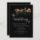 The design showcases delicate wildflowers in burnt orange, terracotta, golden yellow, coral, peach, purple, pink, and rich umber across a romantic elegant black background, evoking the beauty and warmth of the fall season. Stylish crisp white script paired with clean modern typography adds a refined touch, while the watercolor florals create a whimsical, romantic feel.