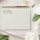A7 USE THIS SIZE FOR THE 5x7 INVITATIONS. NOTE: this is a flat printed design, there are no raised lace, fabric or layered elements on this product. COLOR PALETTE: white, tan, burlap DESIGN COLLECTION: Matching two-sided printed envelopes for wedding, party, event or business use. It fits perfectly for BOHO or Bohemian Style, gypsy inspired, trendy chic stylish weddings. It has a simple, clean yet lovely beauty. Created from vintage Victorian swirl leaf and flower design ornaments that have been graphically hand transformed into an elegant beautiful, sophisticated lace trim background and gorgeous flower lacy central floral element. The burlap pattern has been transformed into a Zig Zag stripe of Chevrons and laid on top of an all over lacey fabric looking background pattern. A complete wedding invitation set is available to match. You may also mix and match with. The reverse side has the complete Chevron burlap pattern with a "ribbon" look of twill and the circle, circular lace pattern with a central medallion baroque floral in the centre.