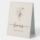 This table tent sign is the perfect size for our tables and easy to read. I also like the material it is made with and no worries about it falling or sliding. Just perfect! Everything about this card is perfect. I like that it says what we want on the front and on the back we were able to personalize a message for our guests.