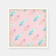 Boho feather baby shower napkins with beautiful pink and teal blue watercolor feathers on a beautiful pink and gold background. These pretty boho feather napkins are easily customised for your event by adding text. You can also remove the feathers and/or the pink background and add the colour of your choice.