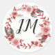 Boho Feather Burgundy Rose Wreath Monogram Wedding Classic Round Sticker