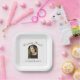 Celebrate your graduate's open house with this custom Boho Feather Frame Photo Graduation Paper Plate. Paper plate design features an arch frame and photo placement of the grad, adorned with bohemian style feathers.
