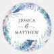 Bohi blue and purple feather thank you stickers with personalised with your names for your wedding favours, features gorgeous watercolor patterned feathers and florals. Matching designs are also available.