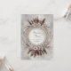 Invite your guests to a celebration of bohemian romance and natural elegance with this exquisite wedding invitation. The design features a stunning central white circular frame encircled by a lavish wreath. This wreath is composed of soft, layered beige and brown feathers, delicate pale pink daisy-like flowers, and intricate sprigs of white and copper-toned foliage. The frame itself is highlighted by delicate gold inner detailing that suggests antique craftsmanship, all set against a subtle, textured gray and white backdrop. This aesthetic beautifully blends earthy, organic elements with classic, opulent accents, perfectly setting the stage for a unique, stylish, or desert-themed wedding. This invitation card is ideally suited for a bohemian style wedding, a chic engagement celebration, or an outdoor reception. It would also perfectly suit a sophisticated fall or desert-themed party or a serene, elegant vow renewal ceremony. The card's captivating blend of pristine florals and a moody, monochromatic backdrop ensures it is versatile for any solemn ceremony, corporate gala, or refined birthday announcement.