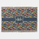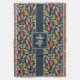 A dark blue band bisects the design, adding a bold contrast to the feather motif. At the heart of the blanket, a larger blue square provides the perfect canvas for personalisation—add your monogram, initials, or a special symbol to make it uniquely yours!