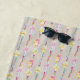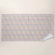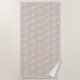 A pretty Bohemian native tribal beads and feathers beach towel in shades of turquoise, pink, and golden brown yellow tones on a background of light brown which can be changed to your own colour choice if required. Matches a range of other bead and feather watercolor art products. Unique watercolor painting and design by Sarah Trett. www.sarahtrett.com for www.mylittleeden.com