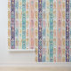 Boho Feathers Pastel Colours Striped Wallpaper