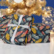 This eye-catching roll of wrapping paper blends boho charm with Art Deco elegance. Set against a rich, dark navy background, the design features an array of stylised feathers in bold primary colours—crimson red, sunflower yellow, and cobalt blue. Each feather is rendered with clean geometric lines and subtle metallic accents that echo the glamour of the Art Deco era.