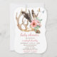 This elegant baby shower invitation features a very soft and delicate floral and feather design. This stylish and trendy design features a beautiful antler that simply makes this design pop. It also contains a modern font that you can customise to fit your needs. If you need help with this design or have any questions or concerns please do not hesitate to contact me.