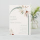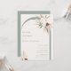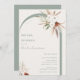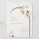 Bohemian Floral Arch Bridal Shower Invitation. Boho style watercolor flowers, pampas grass and delicate green foliage frame on beige and sage green backgrounds.