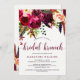 This trendy bridal brunch invitation features pretty watercolor flowers in vibrant shades of marsala, wine, deep green, red, and purple, and matching modern typography.